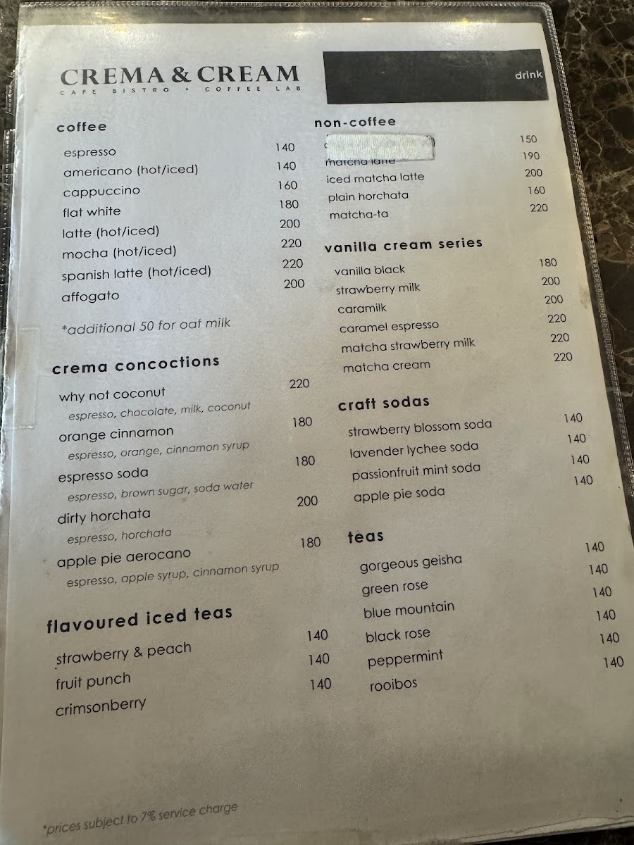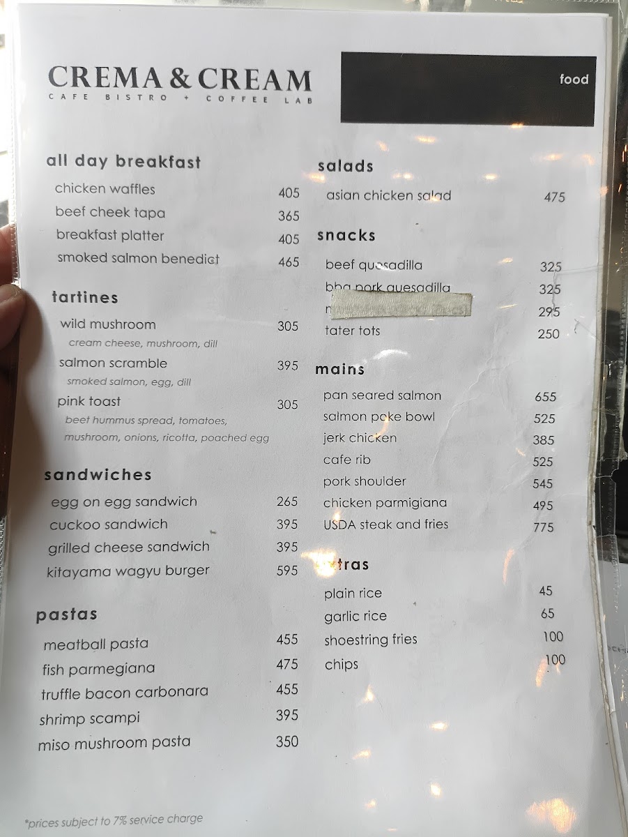 Crema & Cream Cafe Bistro + Coffee Lab Menu